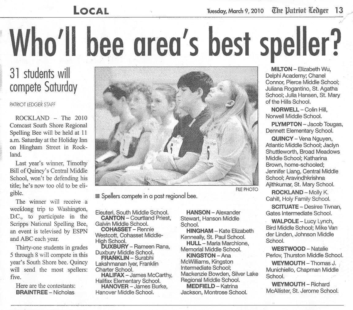 Julia competed after winning her school bee. The winner goes to Washington for the National Bee.