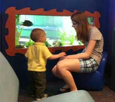 Julia and Liam visit the fish at the Children's Museum