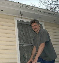 Putting up Christmas decorations on